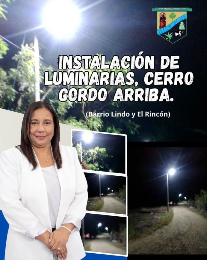 Cana Chapetón, Guayubín, Montecristi. – La Junta Municipal de Cana Chapetón continúa fortaleciendo el desarrollo y la seguridad de sus comunidades con la instalación de nuevas luminarias en varias calles del sector Cerro Gordo Arriba.