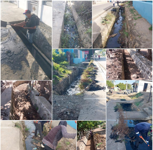 Los trabajos incluyeron la remoción de sedimentos, desechos sólidos y vegetación acumulada que obstruía el paso del agua, con el objetivo de evitar inundaciones y mejorar el drenaje pluvial en zonas vulnerables.