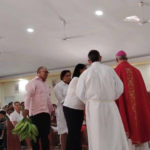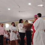 Durante esta importante eucaristía, que congregó a decenas de feligreses, autoridades comunitarias, instituciones y líderes religiosos, una representación de la Junta Municipal, conformada por la alcaldesa, Licda. Ketty Rodríguez, Vice-alcalde, Sr. Ambrosio Peralta, la Regidora, Sra. Carolina Alcántara y la Licda. Zaira Colón, tesorera, hicieron entrega de una canasta con alimentos, como signo de gratitud, pidiendo a Dios que nunca falte el pan en los hogares más necesitados. Que estos alimentos, al ser compartidos, sean también símbolo de amor, unidad y solidaridad entre hermanos.