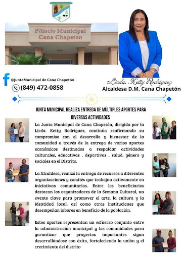 Cana Chapetón, Guayubín, Montecristi. – En un esfuerzo por continuar apoyando el crecimiento y bienestar de la comunidad, la Junta Municipal de Cana Chapetón, dirigida por la Licda. Ketty Rodríguez, realizó la entrega de diversos aportes económicos destinados a distintas causas y actividades de impacto social, cultural y comunitario.