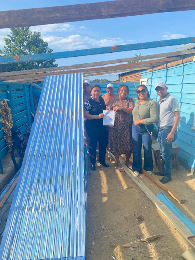 Cana Chapetón, Guayubín, Montecristi – La Junta Municipal de Cana Chapetón, dirigida por la Licda. Ketty Rodríguez, Vice-alcalde y Vocales, realizaron la entrega de láminas de zinc a varias familias de la comunidad de Piloto que resultaron afectadas por el reciente ventarrón.