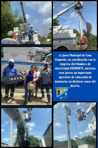La Junta Municipal de Cana Chapetón, dirigida por la Licda. Ketty Rodríguez, en coordinación con la empresa distribuidora de electricidad EDENORTE, llevó a cabo un importante operativo de colocación de luminarias en distintas zonas del distrito, como parte de su compromiso con la seguridad ciudadana y el mejoramiento de los espacios públicos.