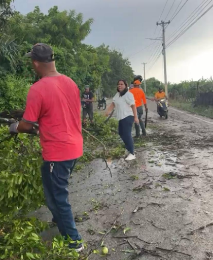 Ante la emergencia, la alcaldesa del Distrito Municipal de Cana Chapetón, Licda.Ketty Rodríguez, se trasladó de inmediato al lugar, junto a brigadas del ayuntamiento, defensa Civil, para retirar los árboles caídos que impedían el tránsito y evaluar personalmente los daños ocasionados por el fenómeno natural.